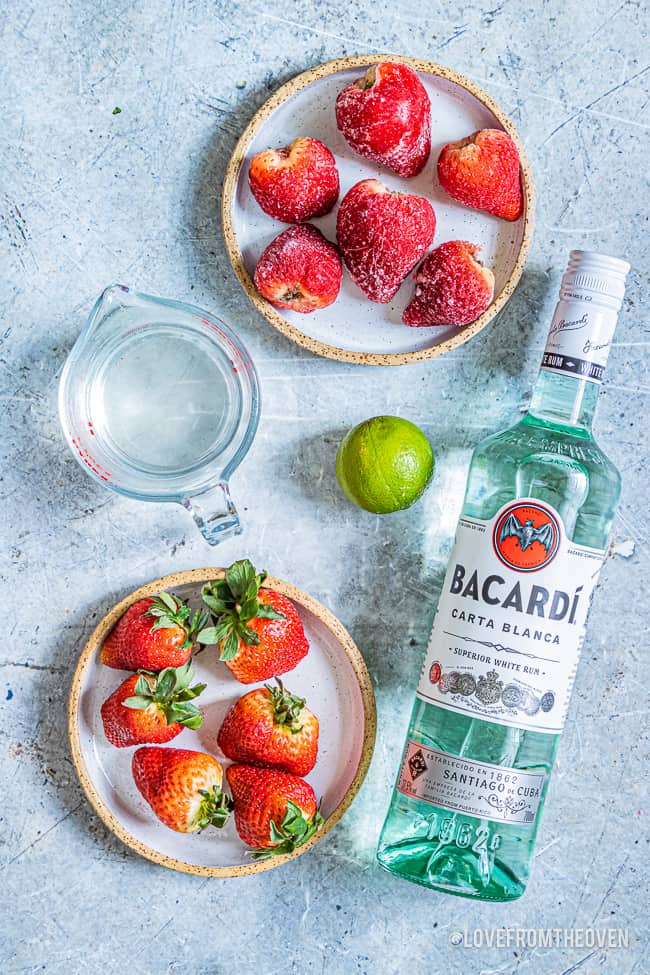 Lime juice freshly squeezed 14 fl oz. Bacardi Carta Blanca light rum. Place the strawberries into the blender and blend until smooth.